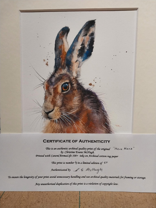Printed with archival ink and on 100% cotton paper for a superb image.